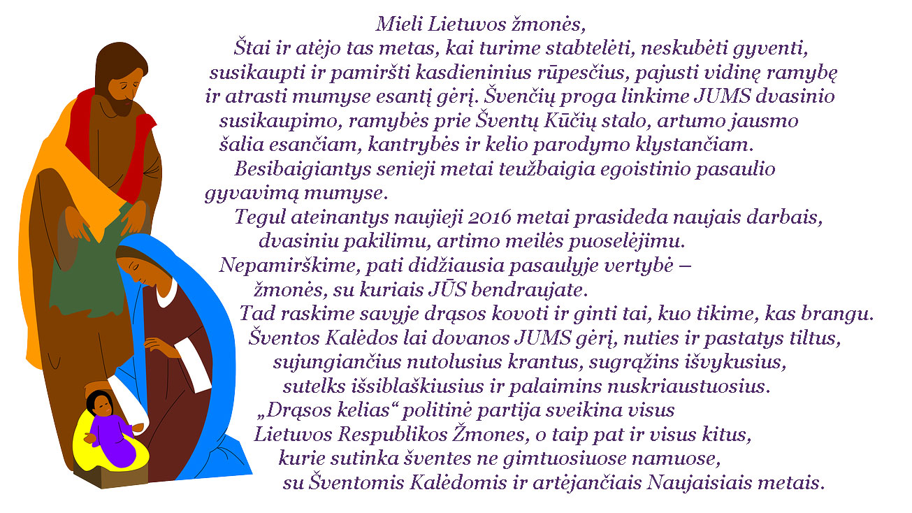 „Drąsos kelias” politinė partija sveikina Lietuvos žmones su Šventomis Kalėdomis ir Naujaisiais 2016-aisiais metais!