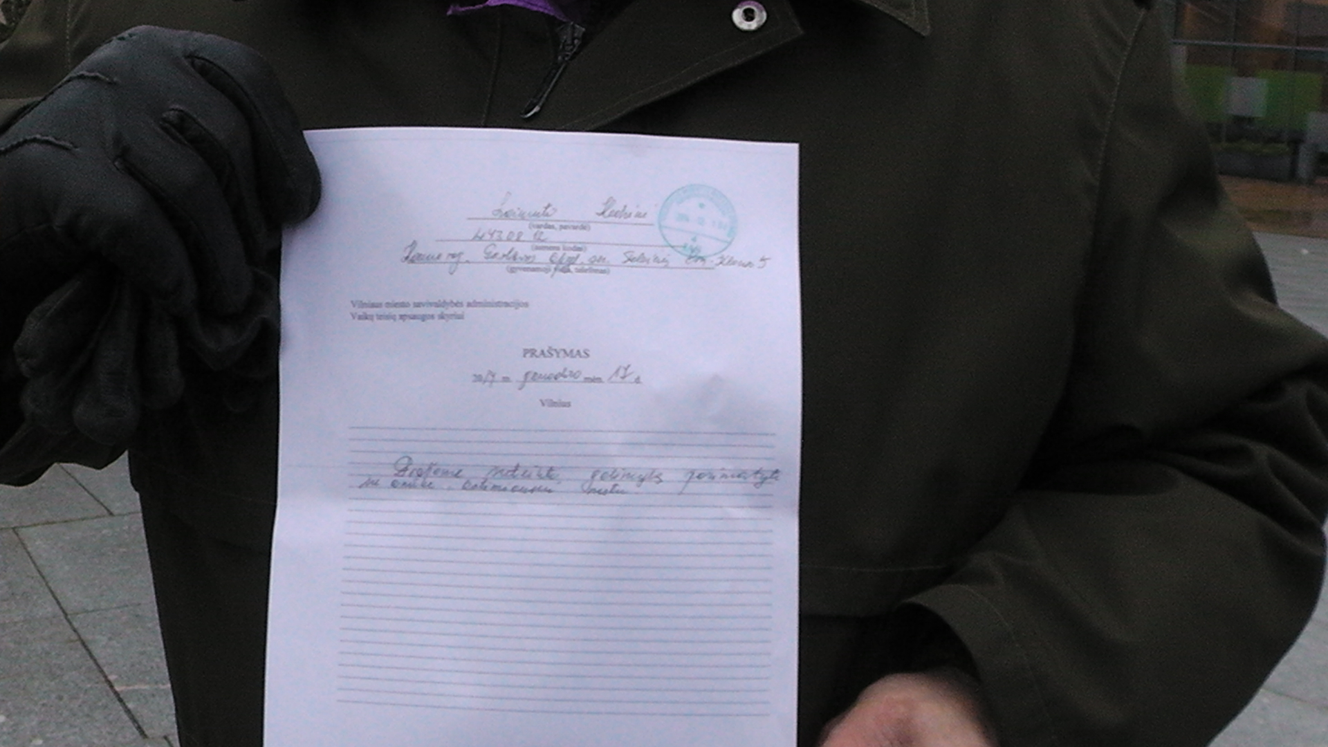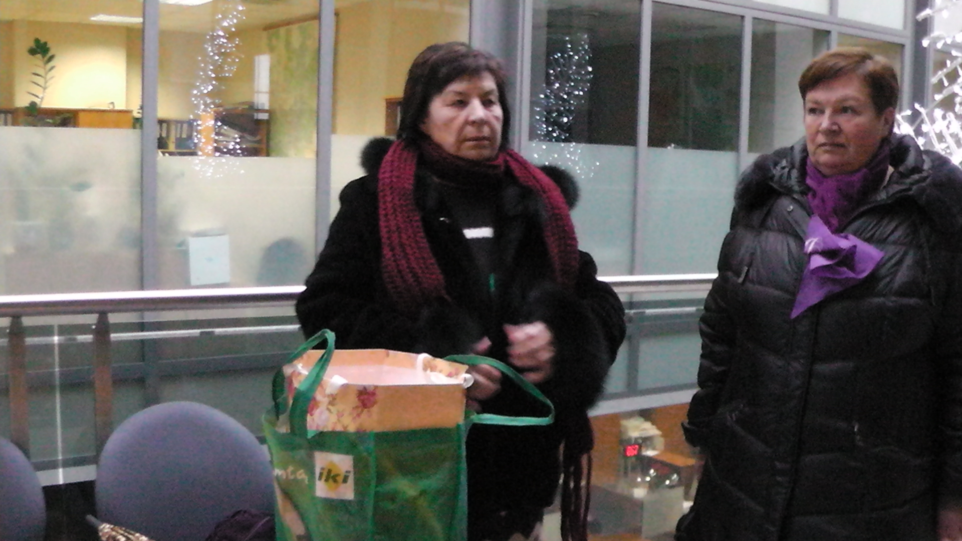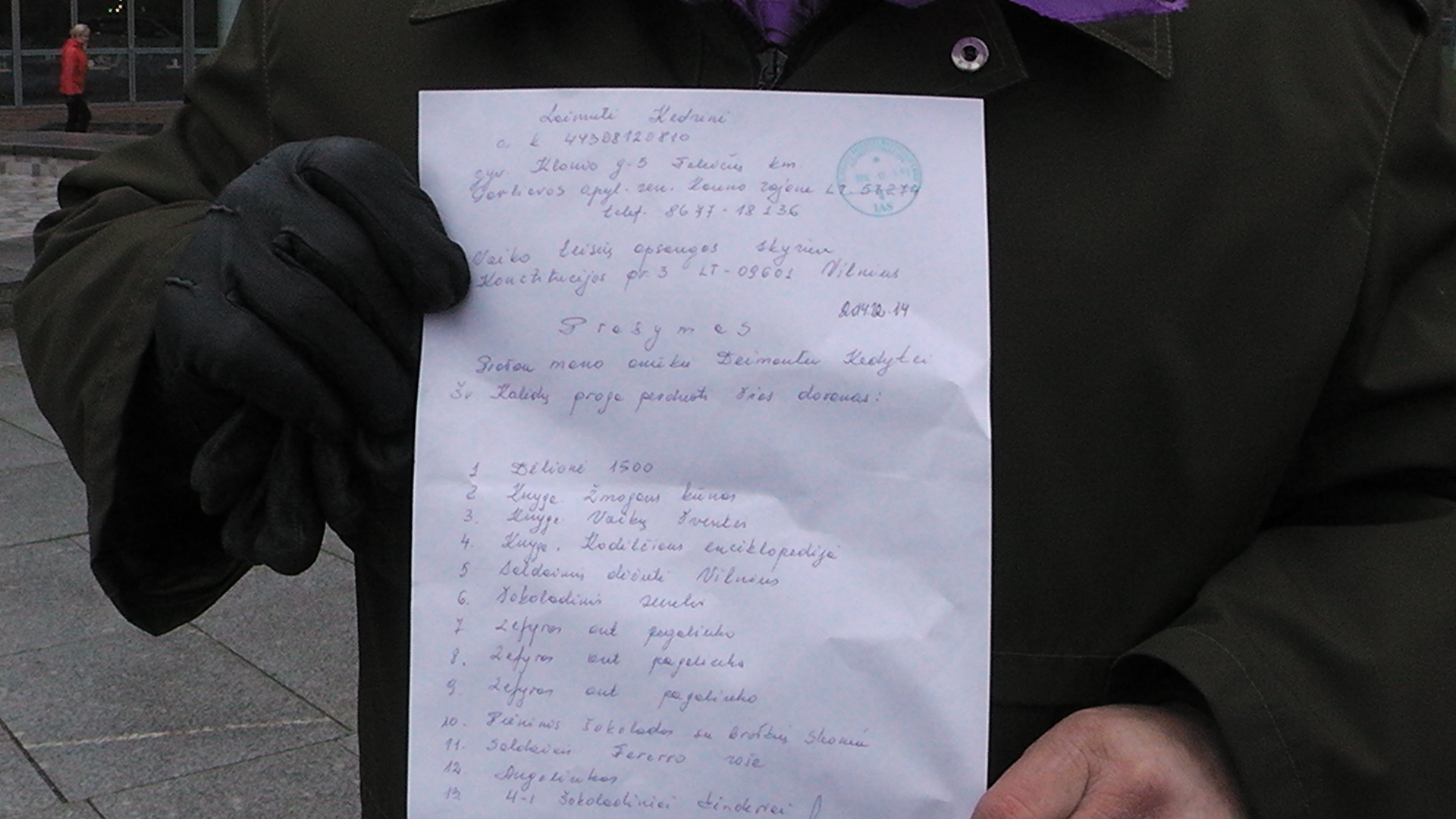 Nuotraukos iš 2014 m. gruodžio 17-os d. Vilniuje prie Vilniaus savivaldybės, kur buvo perduotos Senelių Kedžių Kalėdinės dovanos valstybės įslaptintai anūkei.