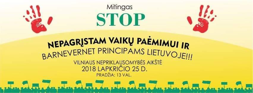 Mitingas “STOP NEPAGRĮSTAM VAIKŲ PAĖMIMUI IR BARNEVERNET PRINCIPAMS LIETUVOJE”