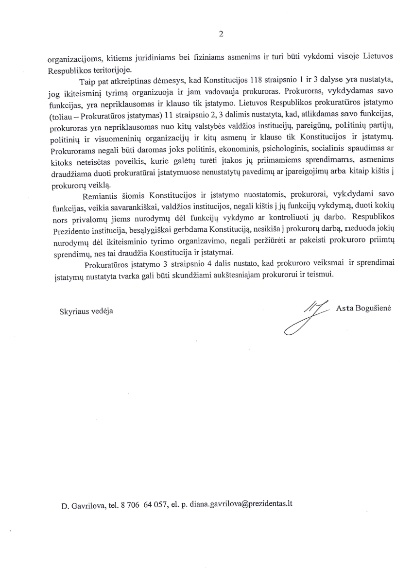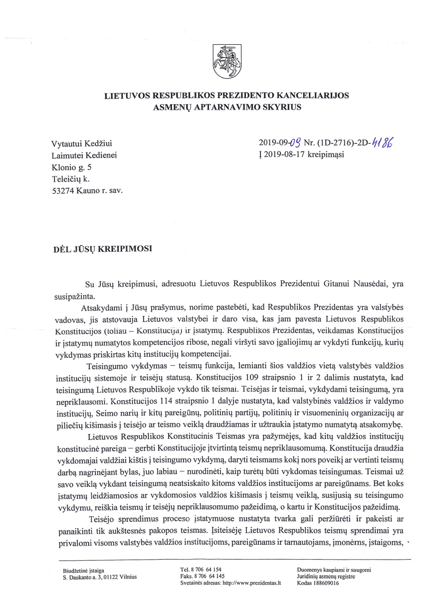 Pati Laima Kedienė, gavusi tokį prezidento laišką, pakomentavo taip : „taip ir žinojau, kad nieko nebus”.