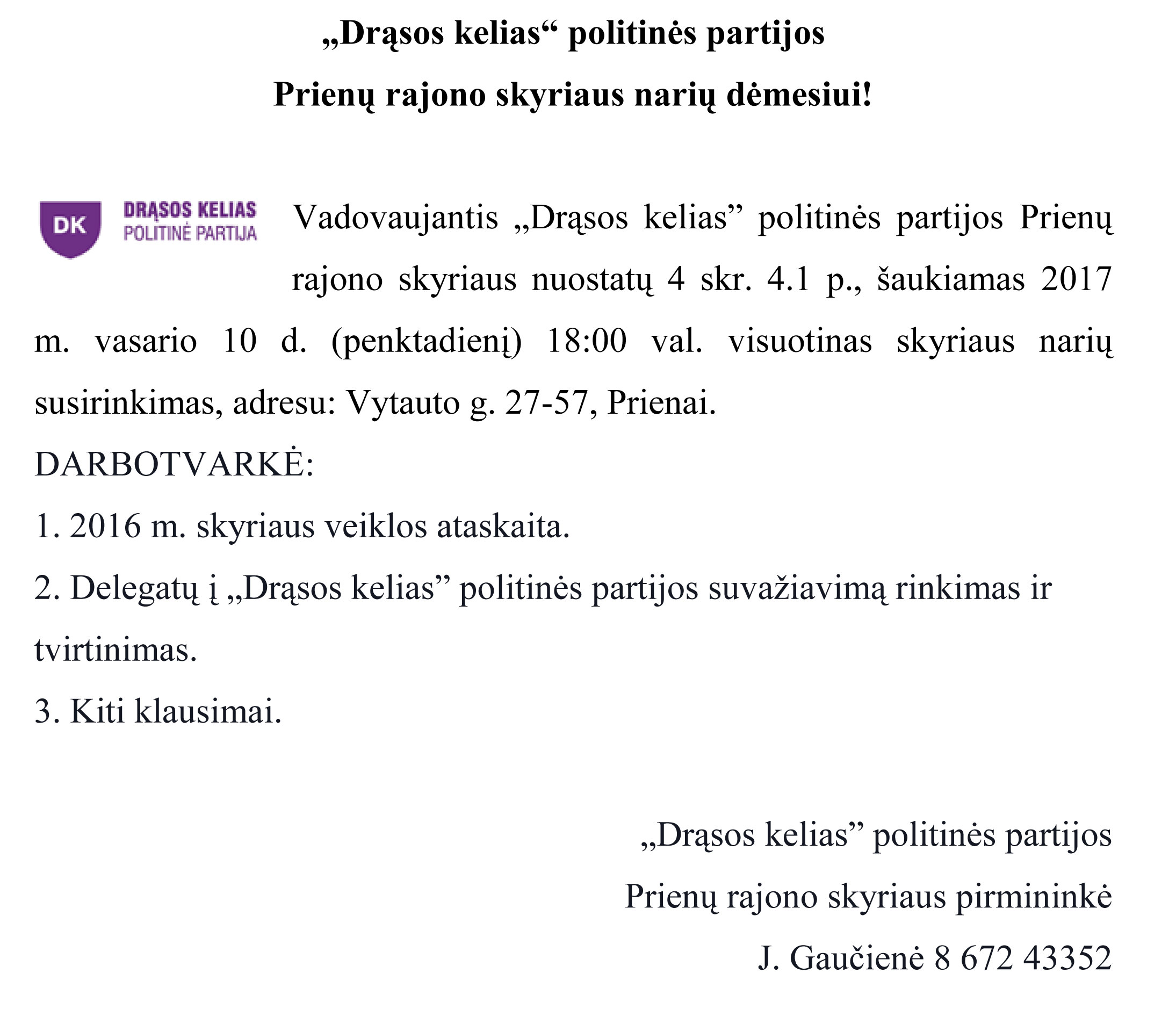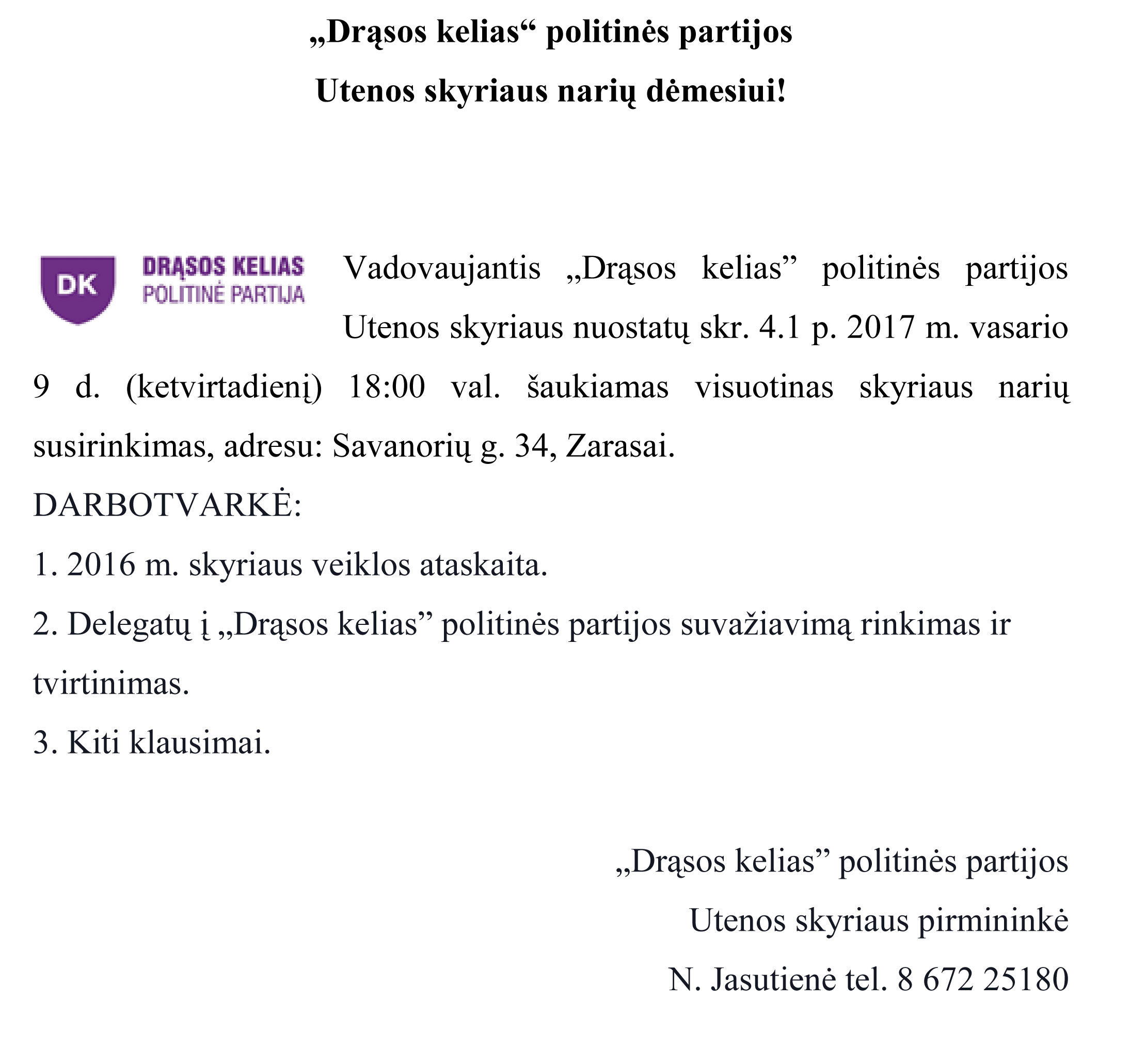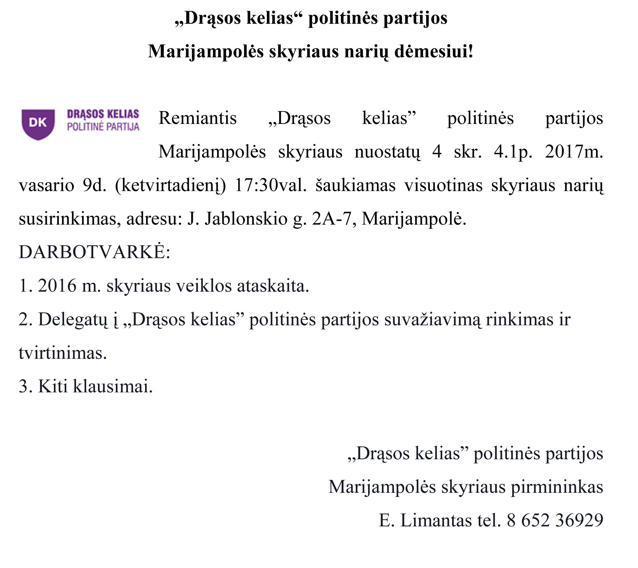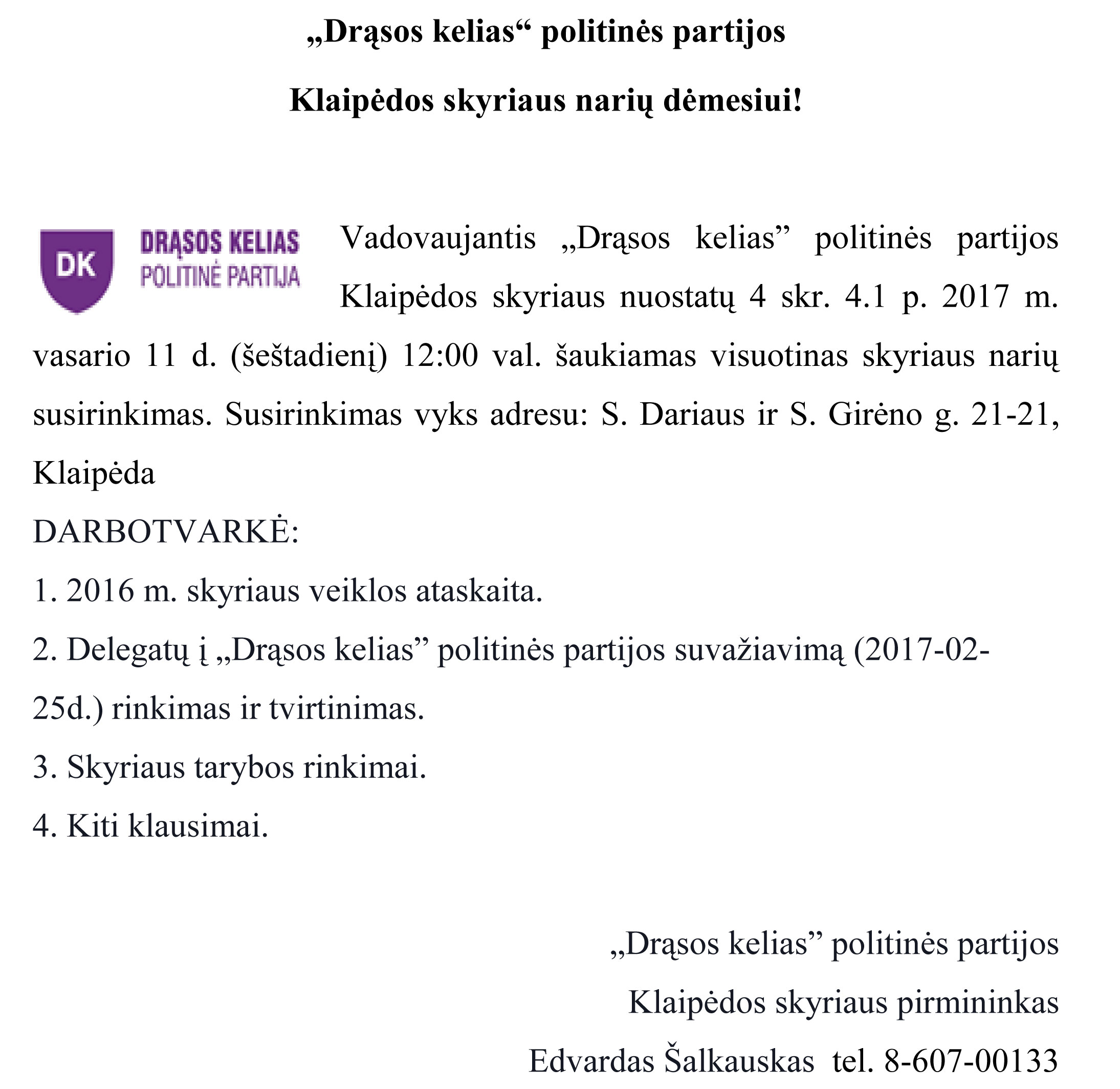 Sklelbiami politinės partijos „Drąsos kelias” skyrių susirinkimai